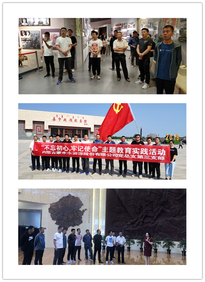 為緬懷革命先烈,發(fā)揚(yáng)革命傳統(tǒng),深入推進(jìn)黨支部“不忘初心、牢記使命”主題教育活動(dòng),8月1日,蒙水股份公司第三黨支部組織全體黨員、入黨積極分子開展了“不忘初心、牢記使命”的主題教育實(shí)踐活動(dòng),先后參觀了烏蘭察布黨史館、集寧戰(zhàn)役紀(jì)念館及地道遺址。